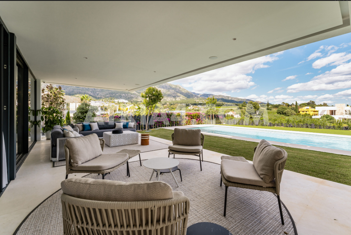 Discover this stunning 5-bedroom contemporary villa located in Marbella’s prestigious Golden Mile, nestled within an exclusive gated community. Designed in 2024 by a renowned local architect, this luxurious property combines modern elegance with breathtaking panoramic views of the sea and mountains, offering an unrivaled living experience.